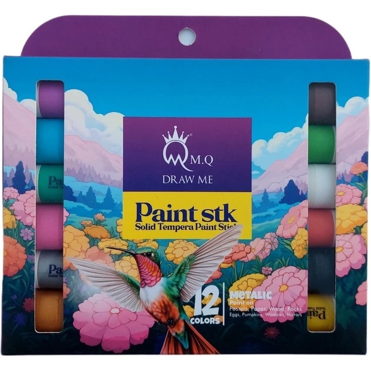 با گواش 12 رنگ جامد شاین دار مدل استیکی چرخشی ام کیو، دنیای خلاقیت خود را به شکلی درخشان و زیبا بسازید!